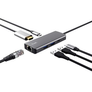 Adapter Trust Dalyx 6-in-1 USB-C multipoort grijs