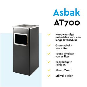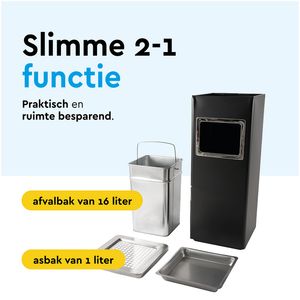 Afvalbak met asbak BRASQ 16 liter AT600 zwart