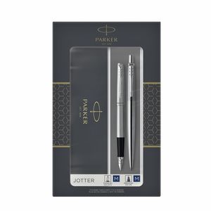 Balpen en vulpen Parker Jotter stainless steel CT medium 2 stuks