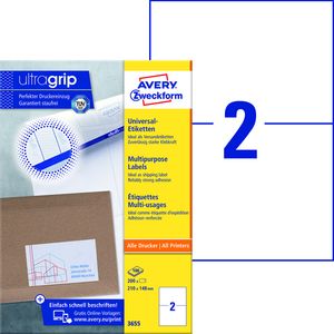 Etiket Avery 3655 210x148mm A5 wit 200 stuks