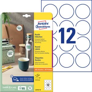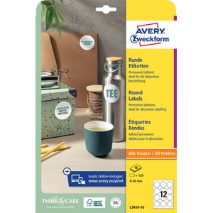 Etiket Avery Zweckform L3416-10 rond 60mm wit 120stuks