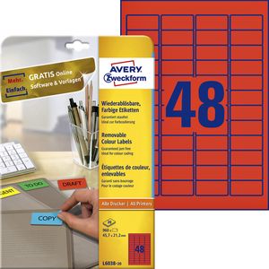 Etiket Avery Zweckform L6038-20 45.7x21.2mm rood 960stuks