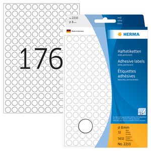 Etiket HERMA 2210 rond 8mm wit 5632stuks