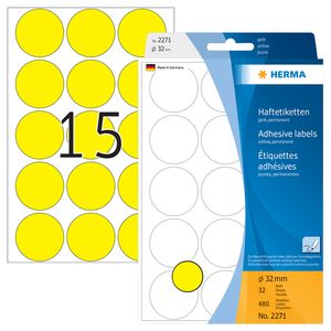 Etiket HERMA 2271 rond 32mm geel 480stuks