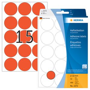 Etiket HERMA 2272 rond 32mm rood 480stuks