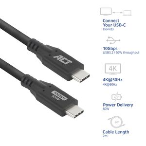 Kabel ACT USB-C 3.2 GEN.2 M/M zwart 2 meter