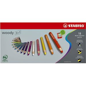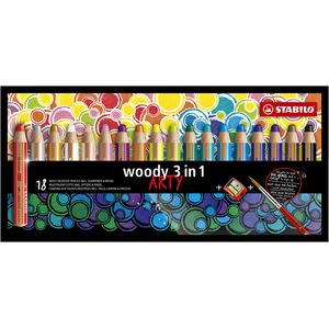 Kleurpotloden STABILO 880 woody 3 in 1 Arty + slijper+penseel ass 18st