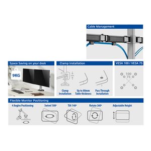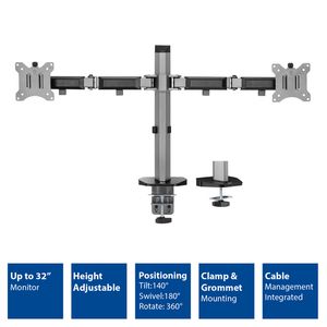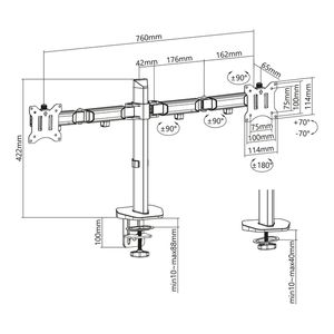 Monitorarm ACT office 2 schermen zilver