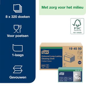Reinigingsdoek Tork W8 Premium 1-laags 40 vel groen 194550