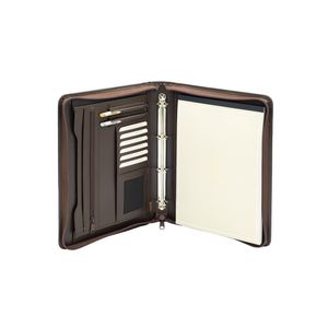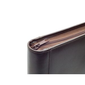 Schrijfmap van der Spek A4 4-rings 25mm O-mechaniek + rits leer met nerf bruin